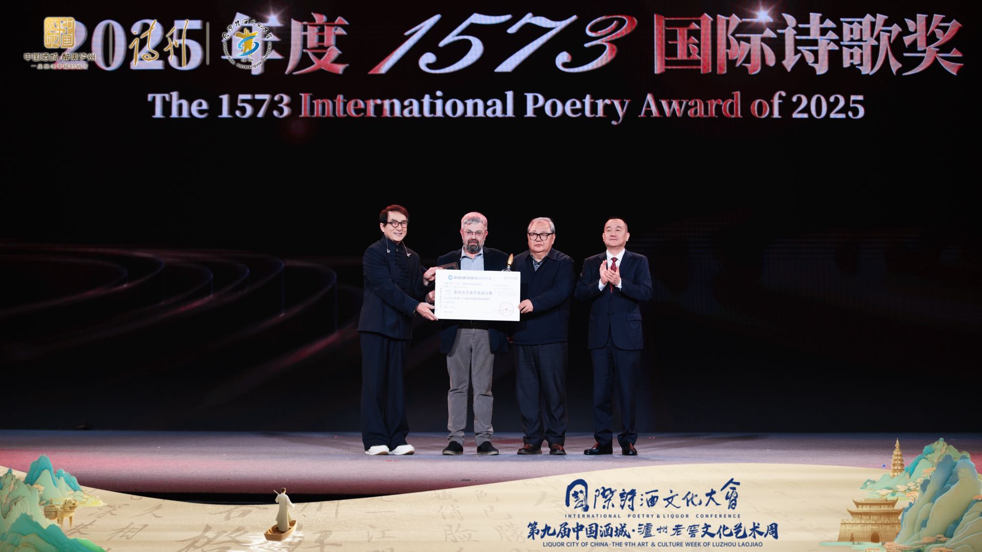 На церемонии актёр Джеки Чан исполнил песню «Страна» и вручил Амелину приз: 157 300 юаней (около 20 000 долларов), диплом и большую бутылку премиального крепкого напитка байдзю 50-летней выдержки стоимостью около 50 000 юаней. Вручение также провели председатель жюри премии, поэт Цзиди Мацзя, и директор завода «1573», где производят этот напиток. Название премии отсылает к 1573 году — дате основания производства.