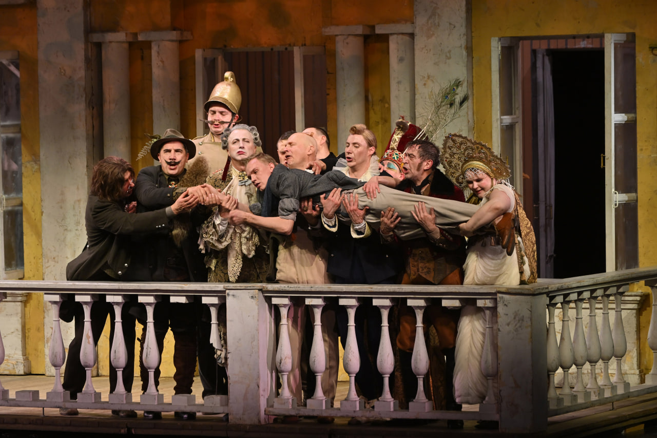 В роли Хлестакова блистает 26-летний Владислав Миллер, ставший в своё время самым молодым исполнителем этой роли на русской сцене. Великолепный образ создала Яна Сексте. Поклонники кино в 2013 году влюбились в её Люсю Полынину из «Оттепели» Тодоровского. Театралам теперь навсегда запомнилась Анна Андреевна, как её воплотила Яна – летающей на полотнах, в костюме древнеегипетской царицы. А ведь такой её создал и Гоголь. Режиссёр лишь увеличил черты образа так, чтобы мы смогли как следует рассмотреть.