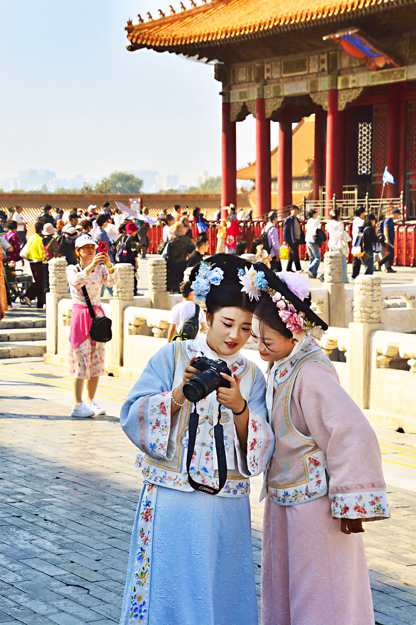 В Запретном городе невозможно не обратить внимание на множество девушек в старинных роскошных костюмах. Российские туристы называют их гейшами, что, конечно, неправильно. Во-первых, гейши были только в Японии. Во-вторых, китаянки в древних костюмах изображают не «женщин с низкой социальной ответственностью», а придворных дам.