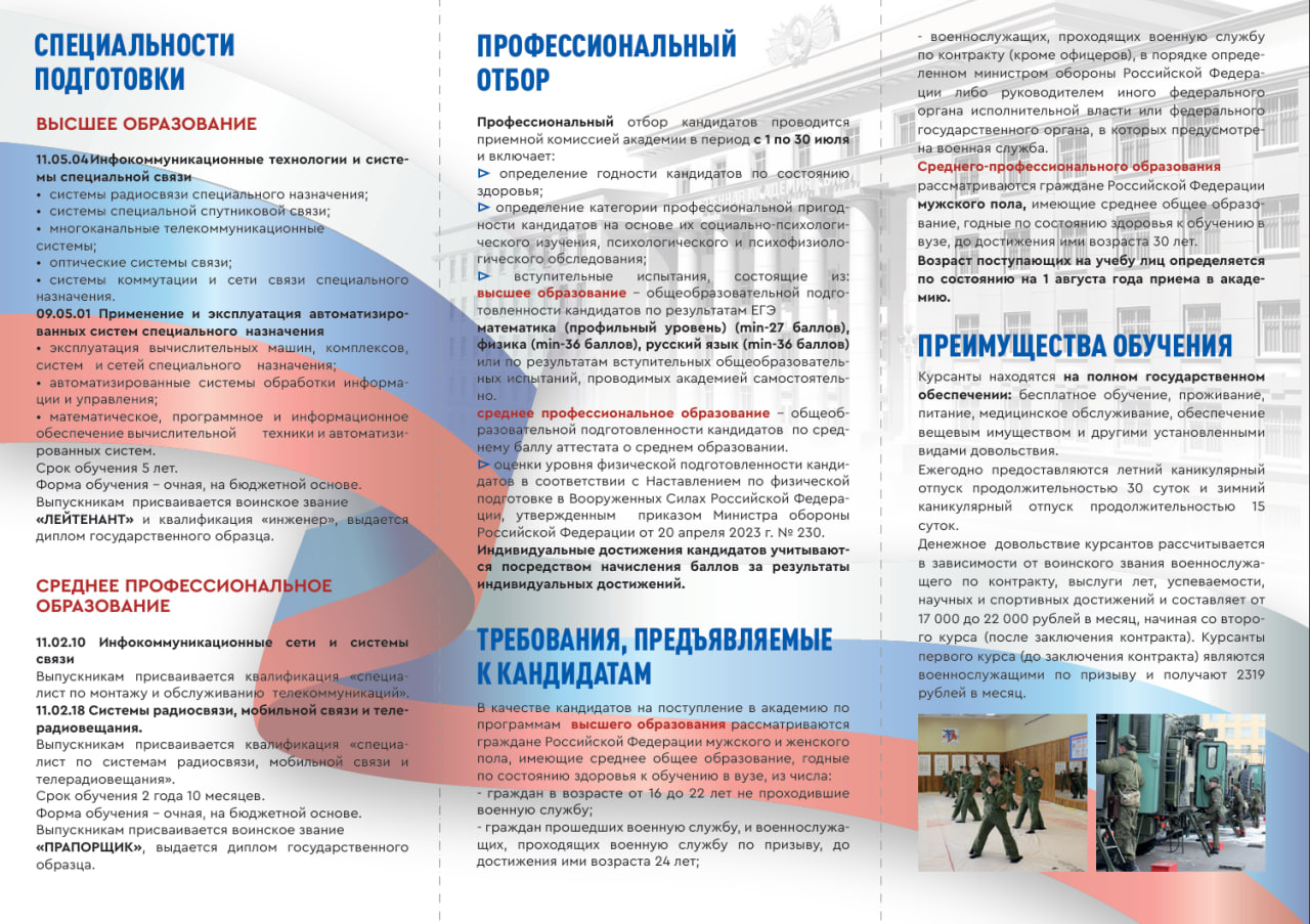 Жителей Курской области приглашают стать абитуриентами Военной академии связи имени Маршала Советского Союза С.М. Будённого. Учебное заведение ведёт набор на программы высшего и среднего профессионального образования.