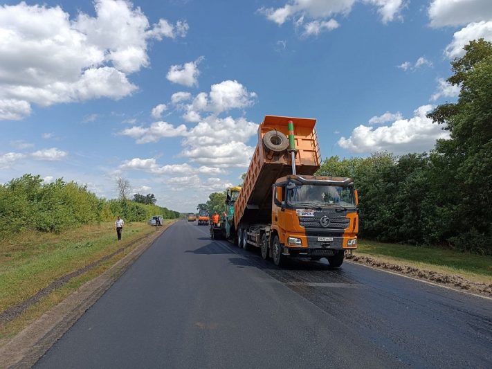 Дорожники устраняют дефекты и укладывают новый асфальт на трассе Отрешково-Петровское-Беседино.