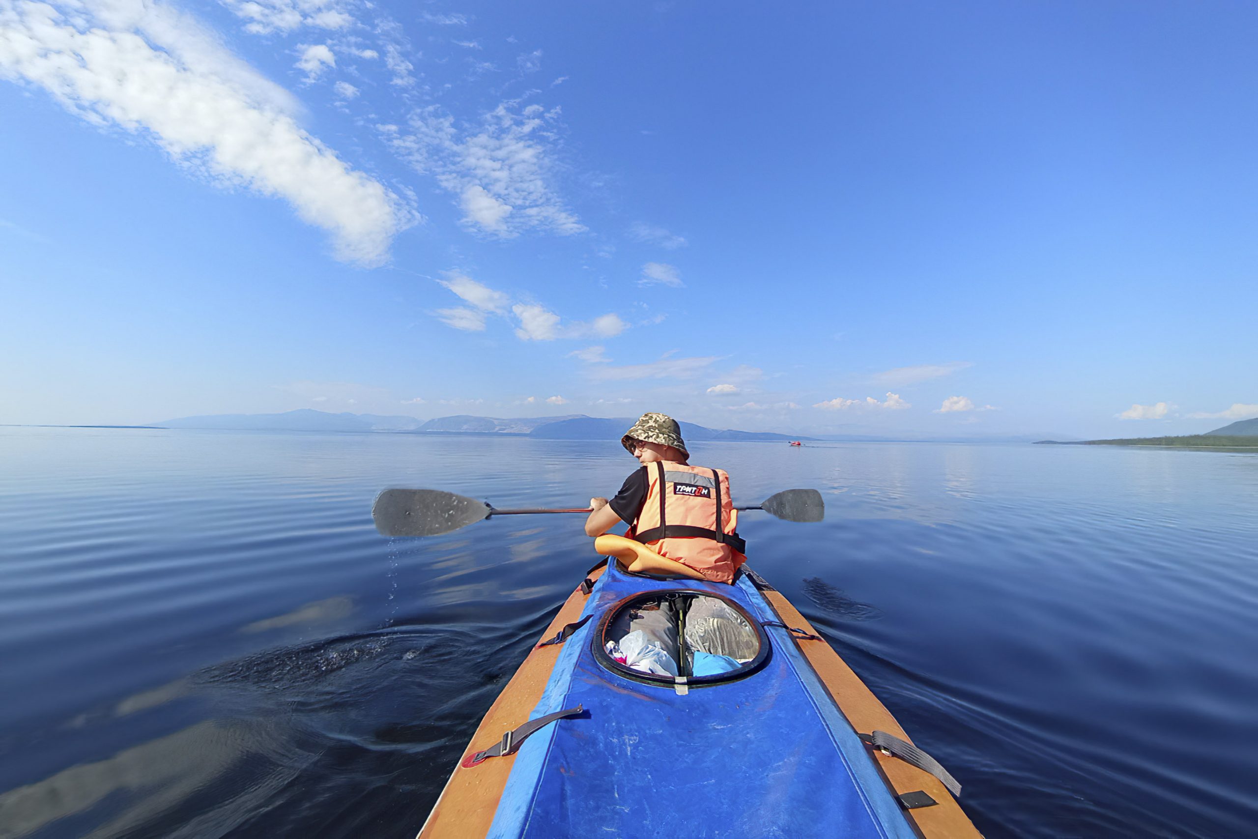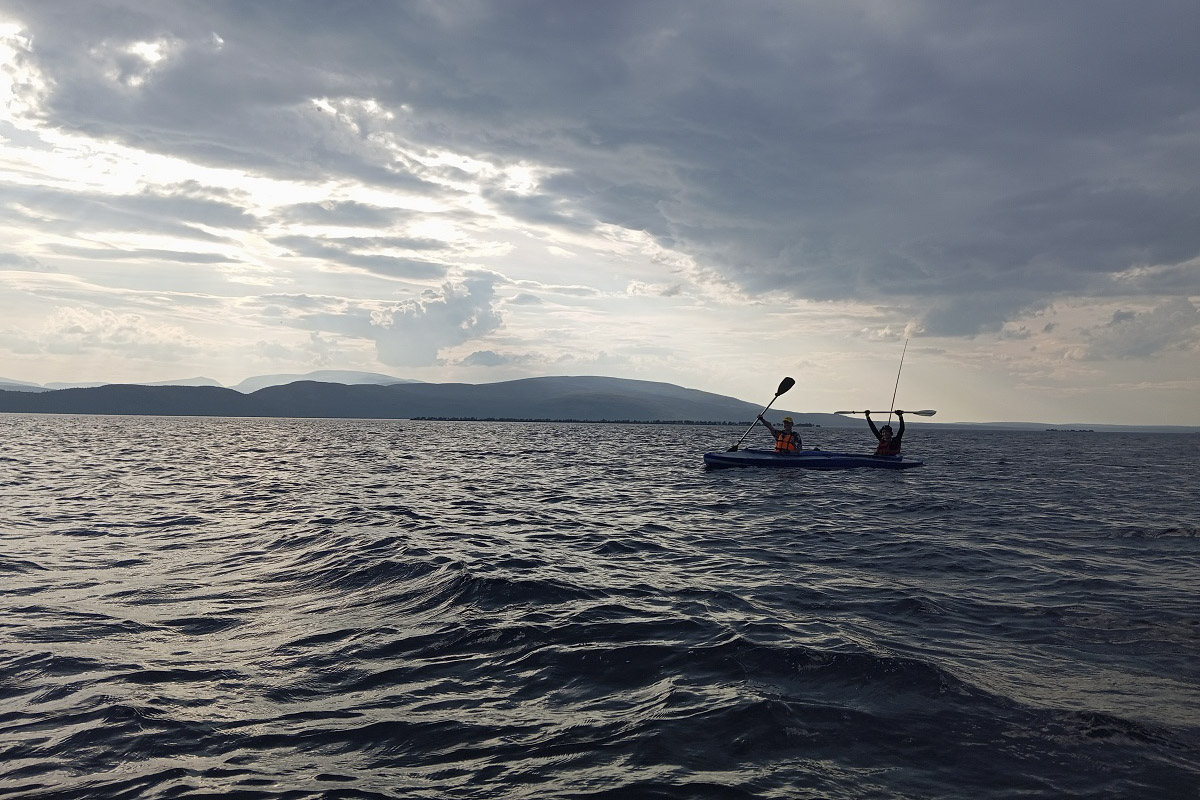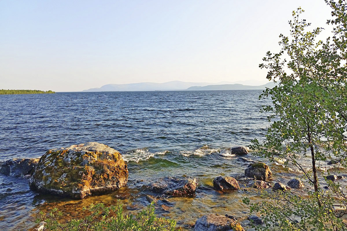 Сцепившись бортами с катамараном, у которого, в отличие от байдарок, был бензиновый двигатель, переправились на противоположный берег Умбозера. Ширина его в этом месте достигает десяти километров. Где-то там, посередине, Борис утопил 15-й айфон. Понятно, немного расстроился из-за канувшего в пучины фотоархива, думал даже искать водолазов.