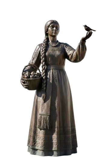 За него проголосовали 60% участников (около 42 тысяч человек). Девушка изображена в традиционном народном костюме с длинной косой, знаменитым курским соловьём и корзиной яблок.