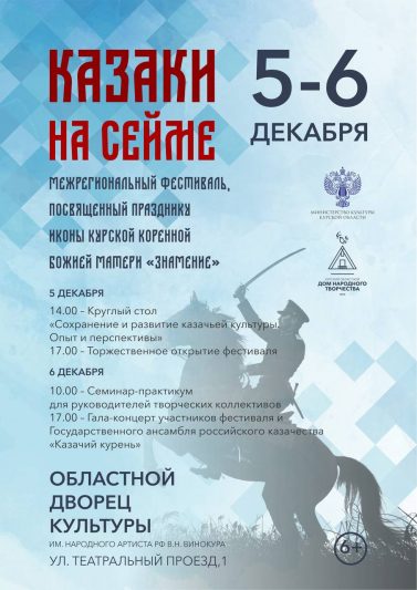 Межрегиональный фестиваль «Казаки на Сейме» пройдёт 5-6 декабря в областном Дворце культуры.