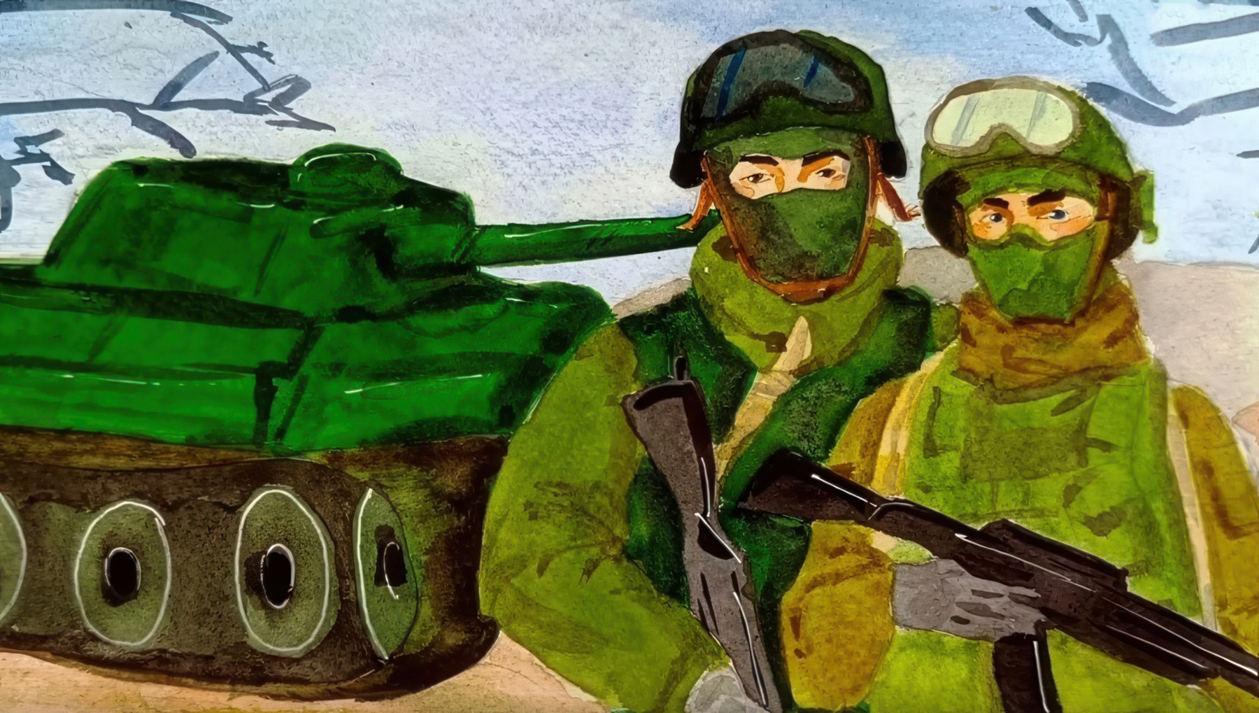 Изобразительное искусство стало для ребят и средством арт-терапии (потому что горящие избы и танки – всё пережитое в дни вторжения осталось на листах бумаги), и выражением веры в будущее России. Боец, выносящий из огня ребёнка, спасающий собаку, кошку, отдающий пайку ребёнку и помогающий боевым товарищам, – такими были испокон веков русские воины и именно такими запечатлели их ребята. Они рисовали счастливые семьи, русскую природу, великую страну с великой историей и культурой – всё то, за что сегодня воюют наши бойцы, за что воевали и наши прадеды.