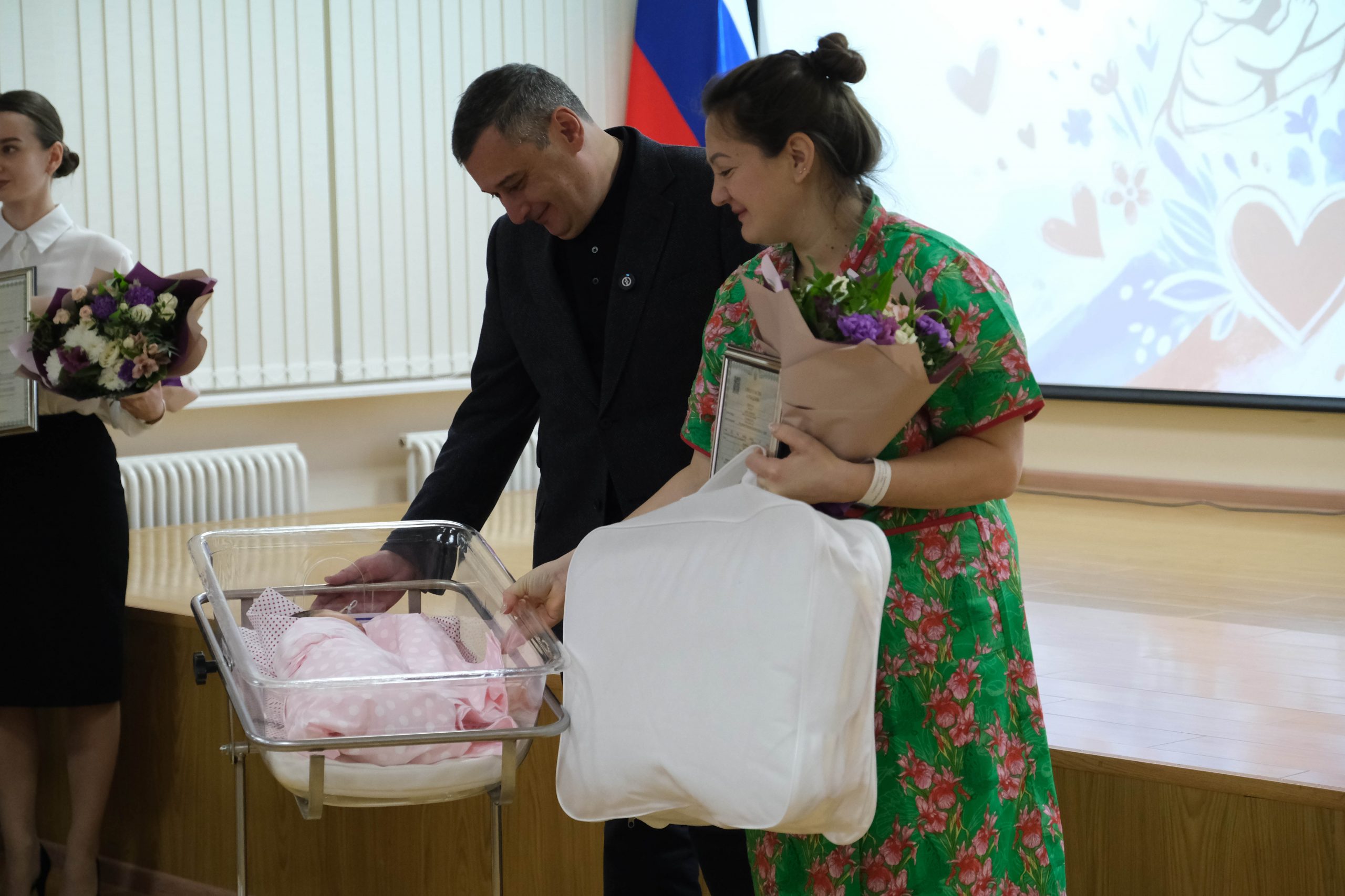 – Самое важное событие для любой женщины – это рождение ребёнка. Для кого-то это первенец, а для кого-то второй или третий. Но какой бы ни был ребёнок по счёту, он всё равно будет любимым и счастливым. Помню, какими были мои малыши при рождении, для любого родителя это буря эмоций, – сказал Александр Хинштейн. – Сегодня мы вручаем этим крохам их первый документ, который даёт им гордое название гражданин Российской Федерации. В преддверии Дня матери я хочу поздравить всех мам с праздником. Для любого человека нет ничего важнее его родителей, его мамы. Цените это.