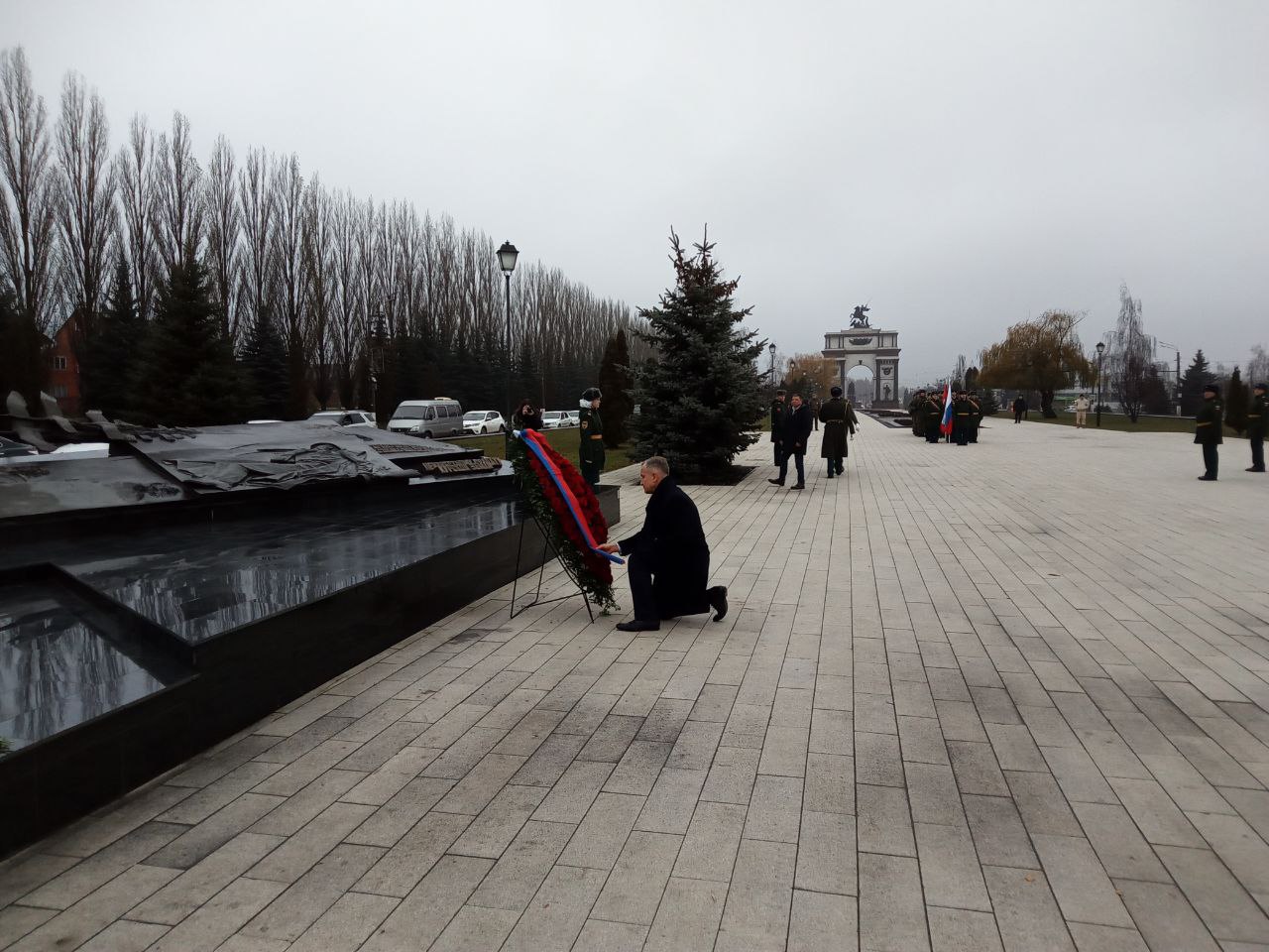 Сегодня на мемориальном комплексе «Курская дуга», расположенном на проспекте Победы, прошла церемония возложения цветов, приуроченная ко Дню неизвестного солдата.