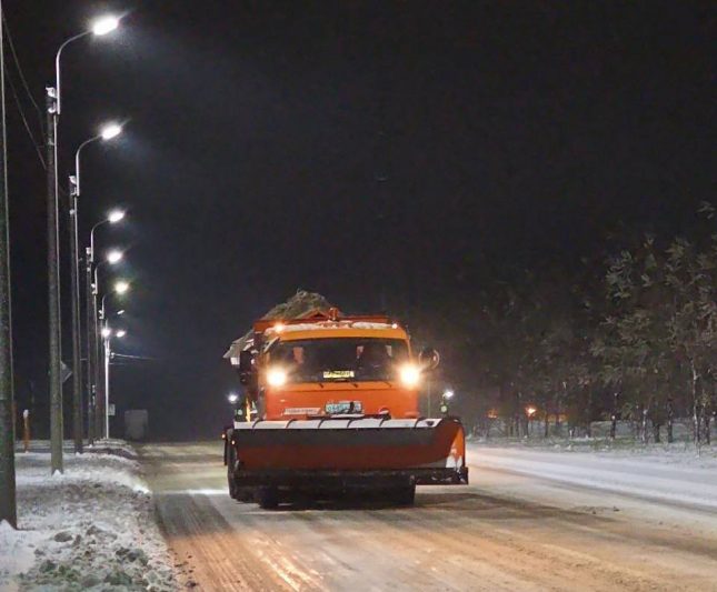 Коммунальные службы задействуют тракторы, самосвалы и погрузчики, используют песко-соляную смесь.