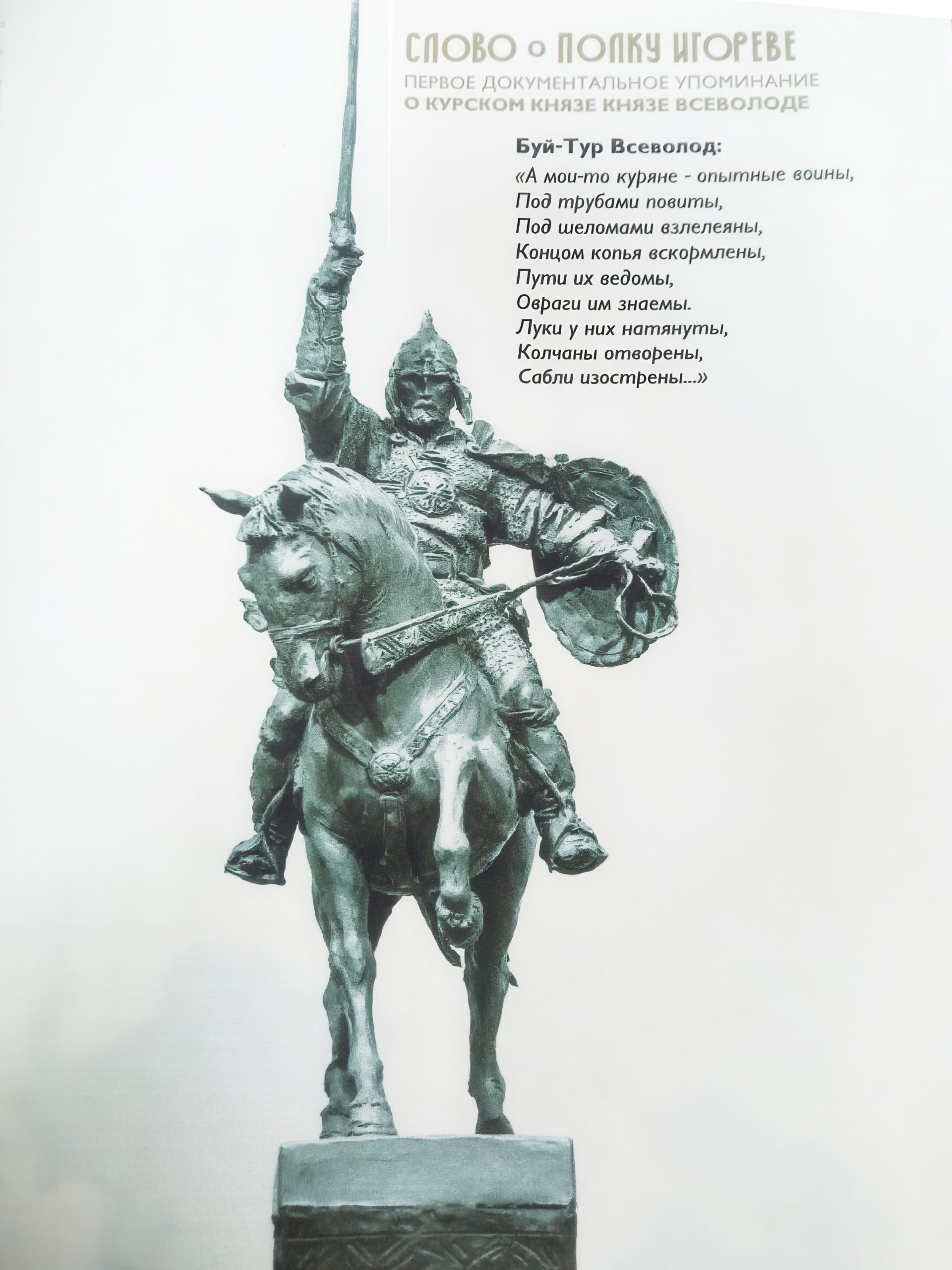 Но памятник – это вовсе не конкретика! Это символика, фокусировка на общем смысле. О чём и говорится в обосновании проекта: памятник символизирует преемственность поколений и воинскую славу, подчёркивает роль Курска как южного форпоста Древней Руси. Посему Буй-Тур здесь – не столько конкретный исторический деятель, сколько собирательный образ, символ.