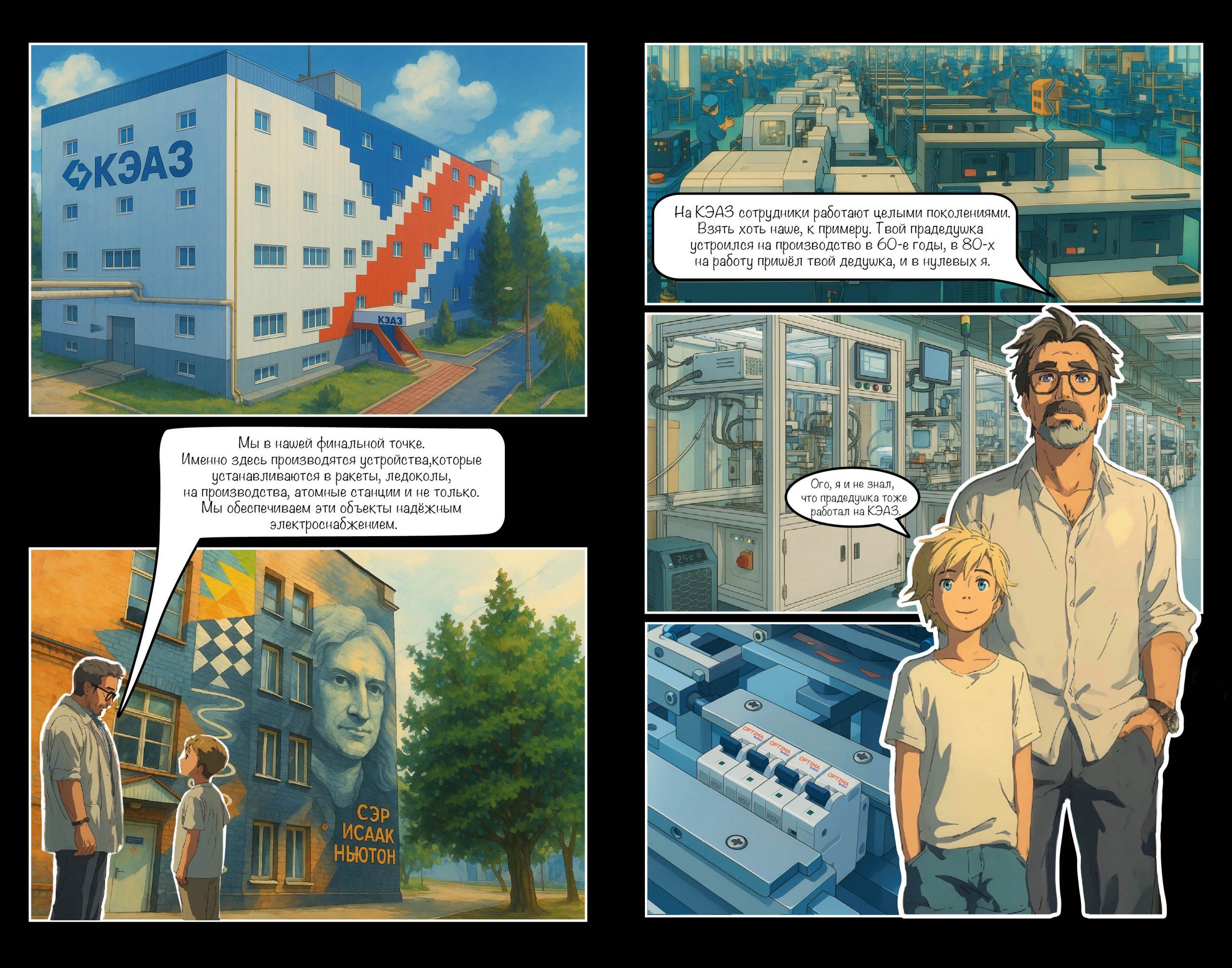 Чтобы выстроить диалог с молодёжью, на КЭАЗ прибегли к нейросетям. Нет, они не расписали чёткий план действий по привлечению молодых сотрудников, а помогли создать нейрокомикс «Поколение КЭАЗ». Нейросети и комиксы – это то, что цепляет молодёжь, тем более если картинки в них походят на японскую анимацию.