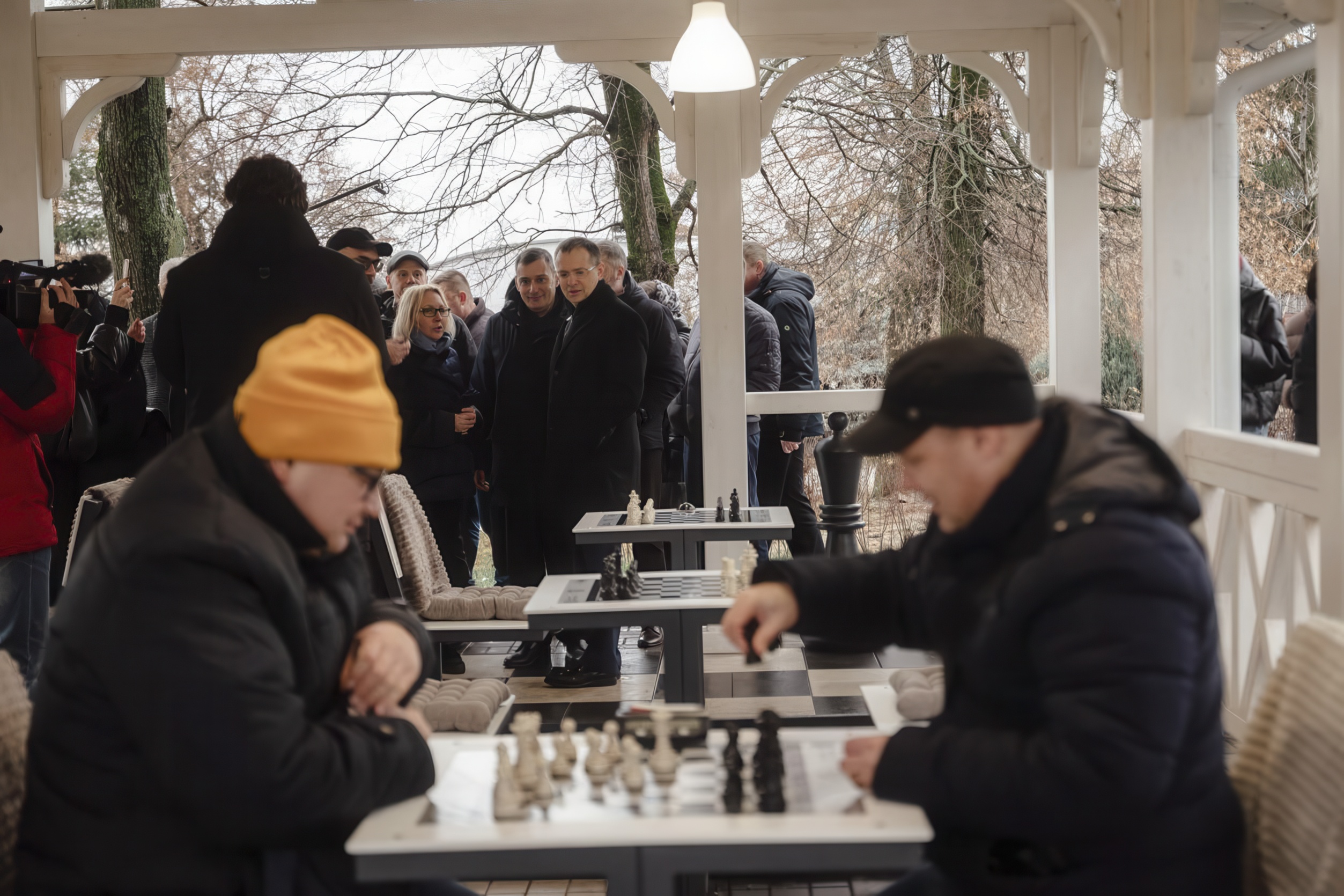 Затем делегация осмотрела шахматную беседку в парке имени 1 Мая. Её открыли летом 2025 года при поддержке Российского военно-исторического общества и Федерации шахмат России. Любители игры собираются в парке с советских времен. Недавно в регионе под эгидой РВИО была создана детская шахматная школа. Общество будет и далее поддерживать школу и поможет создать Шахматную аллею.