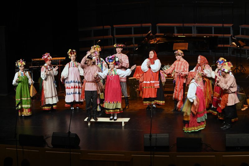 Зрителей ждала премьера музыкального спектакля «За рекою, за быстрою…» по мотивам «Курских песен» Георгия Свиридова, созданного при поддержке Президентского фонда культурных инициатив. Автор проекта, наш земляк, заслуженный артист России Михаил Иванов, и художественный руководитель Тимофей Гольберг представили необычную интерпретацию «Курских песен». Спектакль в постановке режиссёра Александра Бильданова представляет собой триединый музыкальный опыт, в котором органично переплетаются аутентичные, свиридовские и современные звучания. Уникальный творческий эксперимент соединяет в себе народный мотив, классическую музыку, современное электронное звучание в единое действо.
