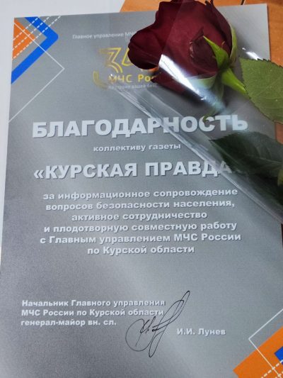 В завершение главный спасатель региона Иван Лунëв наградил представителей СМИ за плодотворное сотрудничество, включая редакцию газеты «Курская правда».
