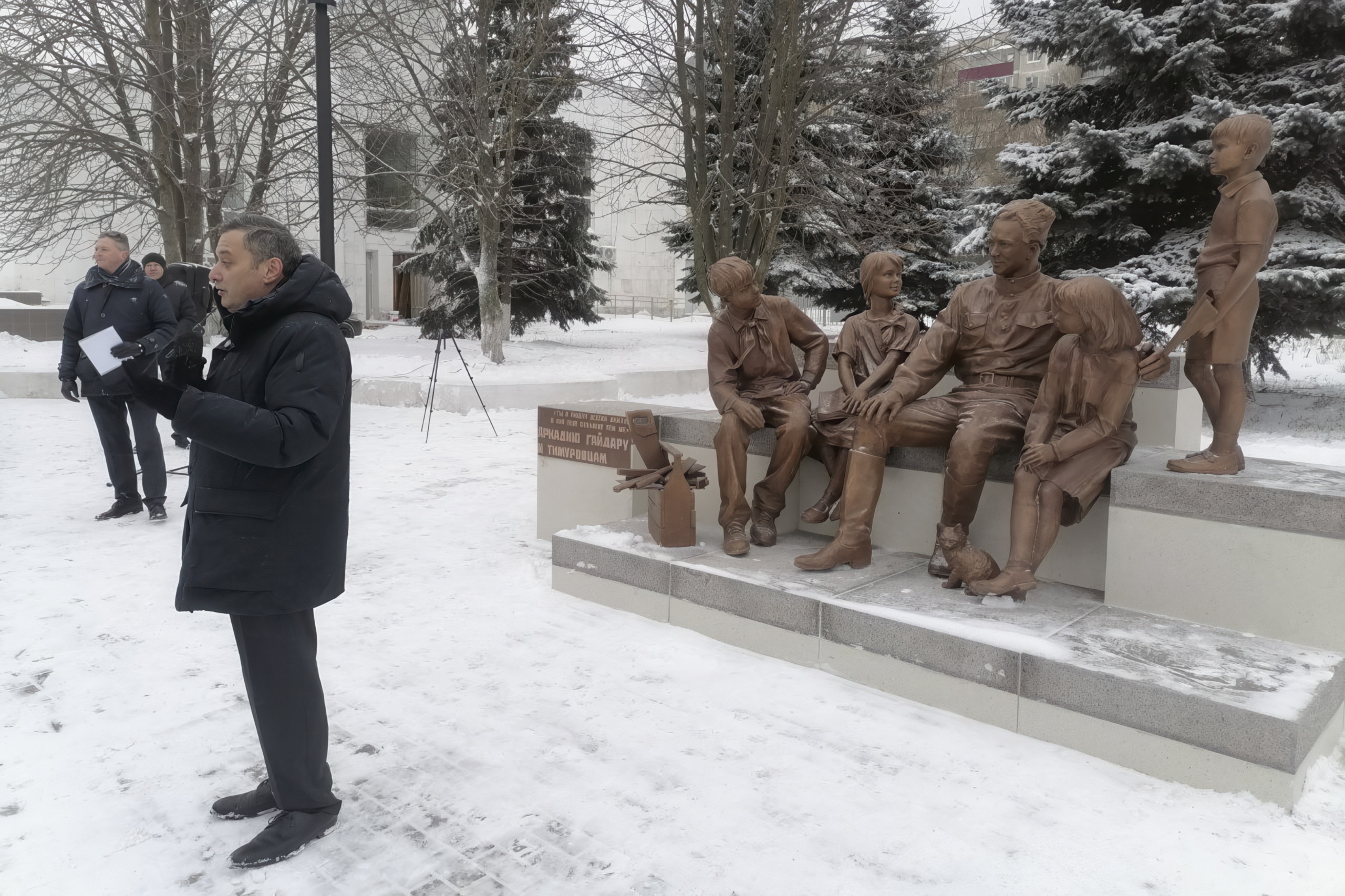 В честь 85-летия волонтерского движения в России в Курске открыли памятник Аркадию Гайдару и тимуровцам