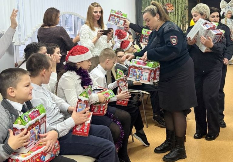Сотрудники Сеймского отдела полиции Курска на Рождество побывали в школе-интернате, чтобы поздравить воспитанников с праздником. Стражи порядка не только привезли подарки для детей, но и поучаствовали в развлекательной программе с конкурсами и викторинами.