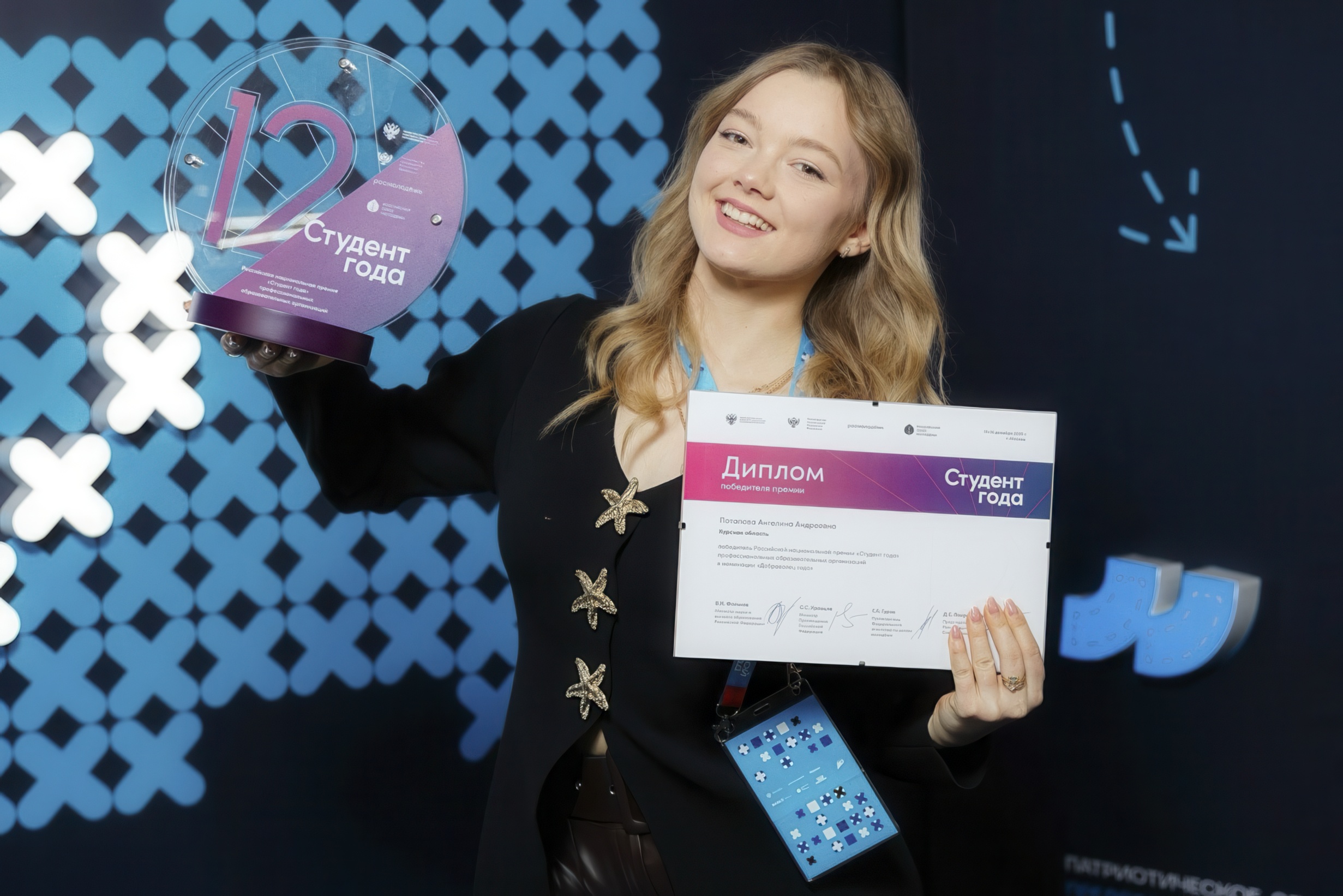 Стали известны итоги Российской национальной премии «Студент года». Более 850 талантливых студентов со всей страны боролись за звание лучших в своих номинациях. Отличились и куряне – привезли домой ряд побед. Пообщались с «Добровольцем года профессиональной образовательной организации» – студенткой колледжа коммерции, технологий и сервиса КГУ Ангелиной Потаповой – и узнали о пути к победе.