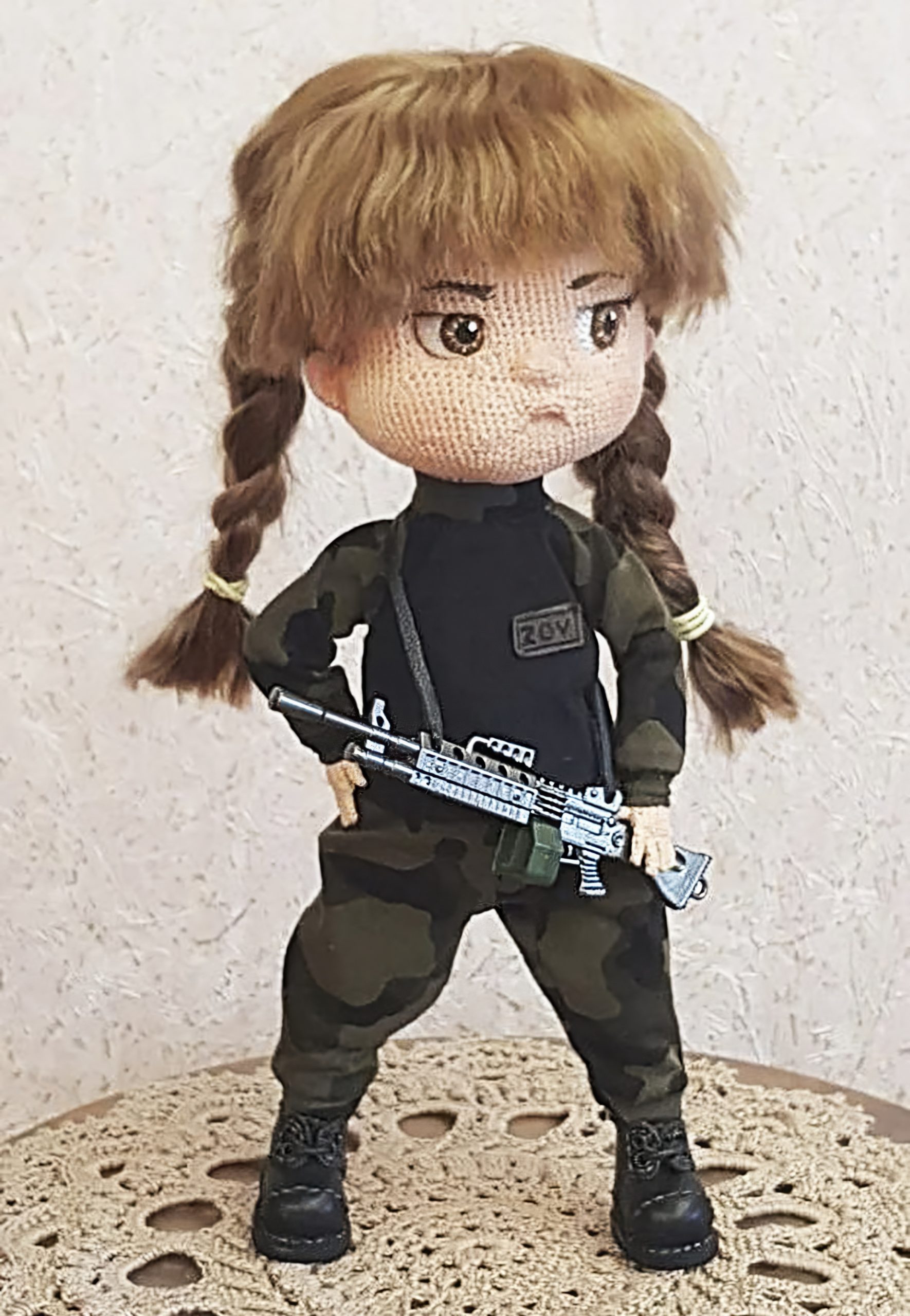 – Думала, буду вязать, успокаиваться. Когда погружаешься в творчество, это всегда успокаивает и отвлекает от негативных мыслей, – делится мастерица. – Но вы думаете, я связала что-нибуд?.. Я ничего не смогла сделать, так и прокаталась с этим мешочком пряжи. А когда вернулась, очень быстро закончила работу. Буквально за несколько дней родилась кукла, которая не планировалась, – девочка-воин. Такое было настроение. Эта кукла стала подарком для женщины, которая работает в военной полиции.