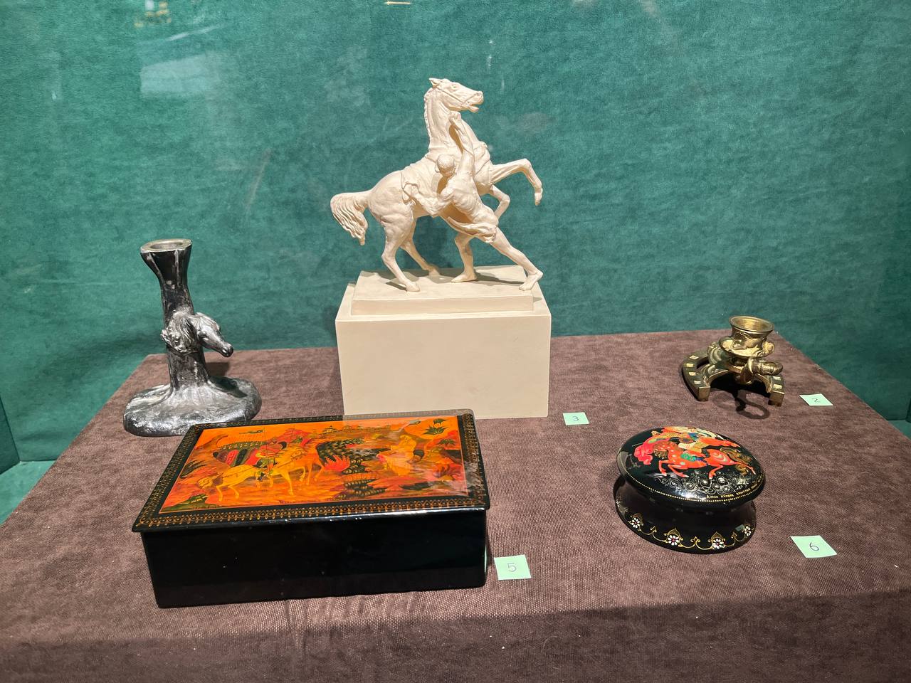 Предметы искусства, детские игрушки, профессиональная амуниция и атрибутика: в Курском краеведческом музее открылась выставка «Все мы немножко лошади». Представлены экспонаты из фондов краеведческого музея, Конноспортивной школы олимпийского резерва, частных коллекций. Выставка посвящена значению лошади в жизни человека в прошлом и в современности. Представлены и предметы, которые используют для ухода за лошадьми: щеточка-крюк для расчистки копыта, обрезка, клещи, пилка.
