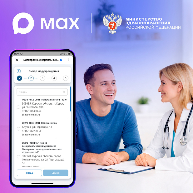 Жители Курской области получили возможность записаться на прием к врачу через специальный сервис в мессенджере MAX. Для этого нужно перейти по ссылке сервиса и пройти первичную авторизацию.