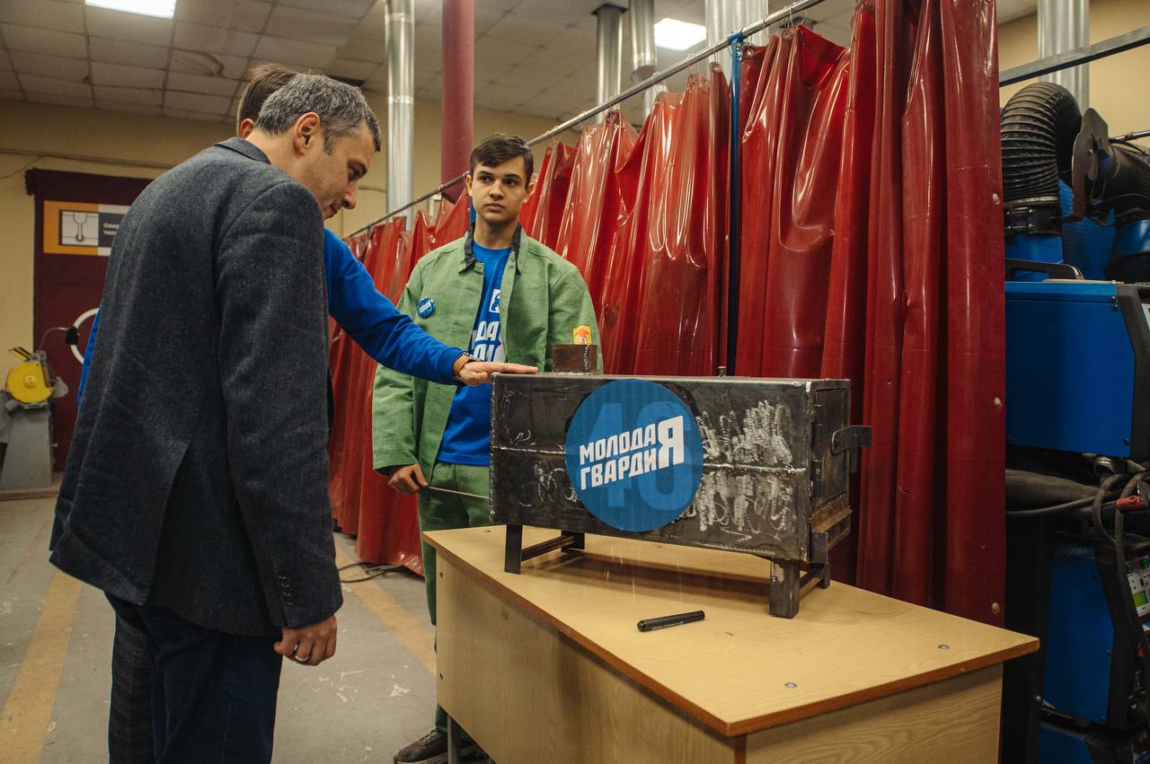 По его словам, около года назад он познакомился со студентами Курского электромеханического техникума и активистами «Молодой гвардии», которые изготавливали переносные печи для военнослужащих. Волонтёры рассказали, что могут выпускать до 40 изделий в месяц, но им не хватало металла. После обращения губернатора Союз машиностроителей оплатил материал, и на фронт дополнительно направили 160 буржуек.