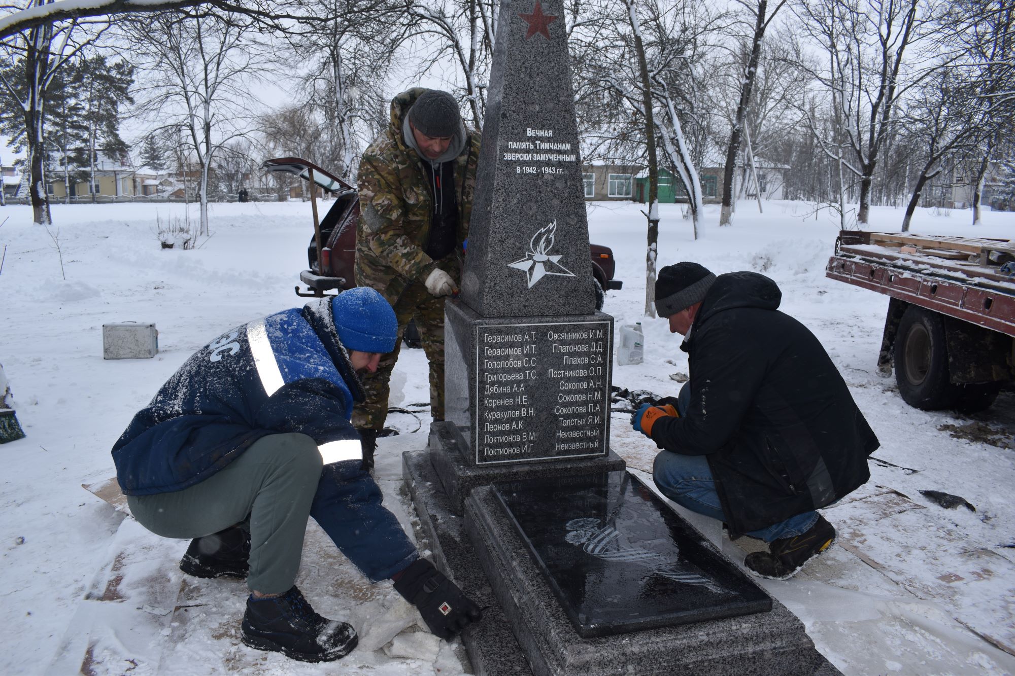В минувший год 80-летия Победы и защитника Отечества многие памятники и мемориалы в Тимском районе были отремонтированы. А в декабре произошла замена памятника и на бывшей безымянной братской могиле в центре Тима. Теперь мне не стыдно будет при переписке с земляками, проживающими в разных уголках России, прилагать фотоснимки памятника, на котором выгравированы фамилии и инициалы казненных тимчан! К сожалению, многие мои адресаты не дожили до этого значимого события…