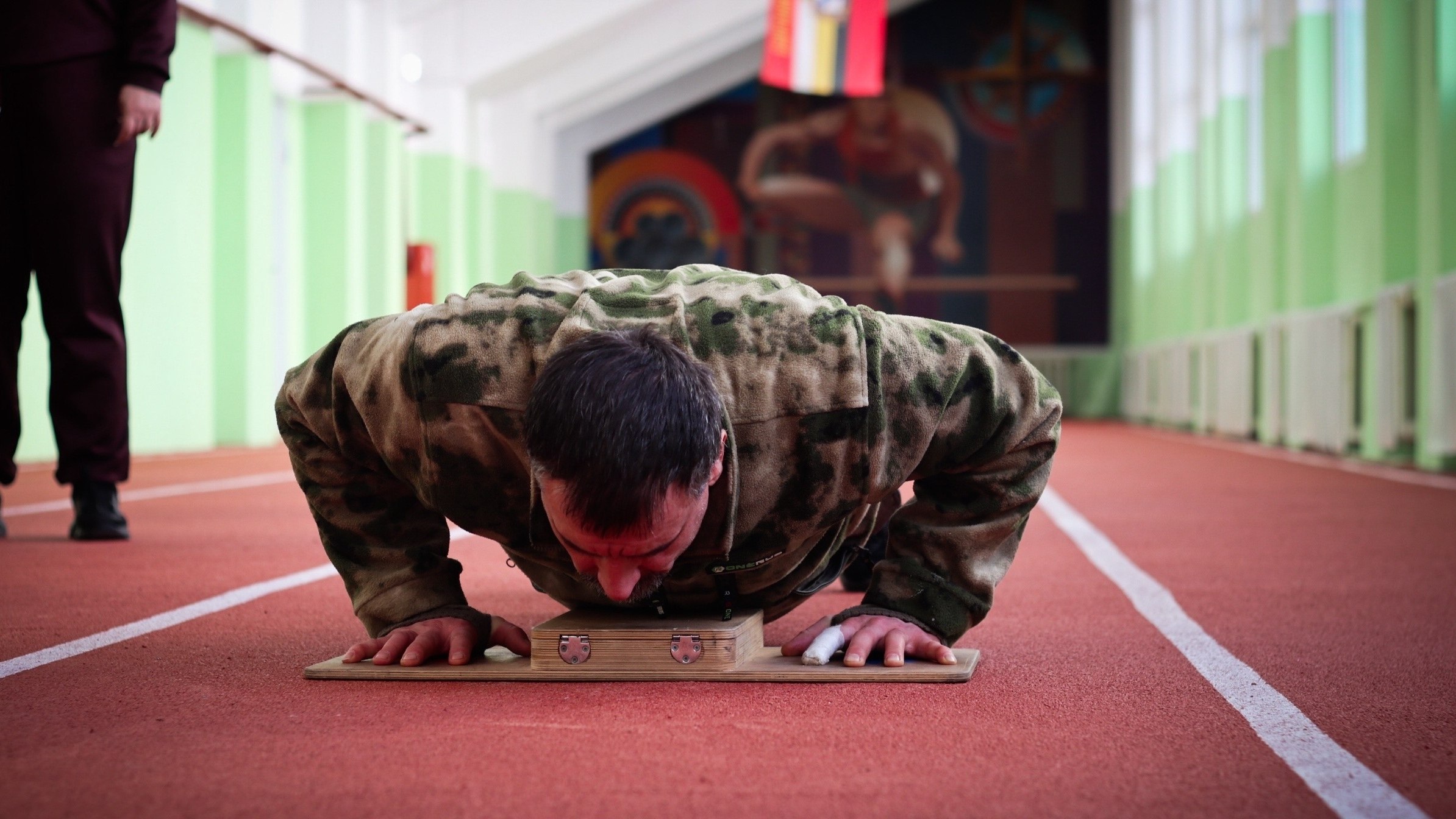 Проверка физподготовки добровольцев прошла на городской спортивной площадке и включила несколько испытаний.
