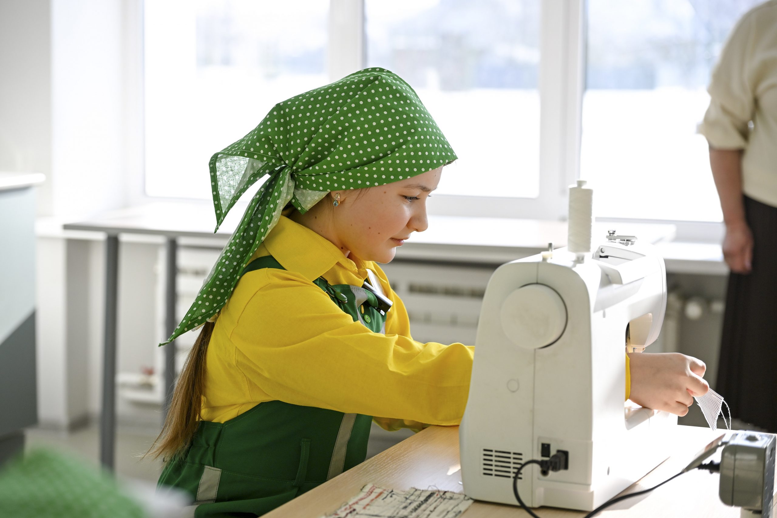 Новое оборудование и в кабинетах труда. В старой школе кабинета технологии у девочек не было. В новом есть и швейные машины, и большой раскроечный стол, и зона для уроков кулинарии: электрическая плита, кухонный гарнитур. Есть все и для профориентации.