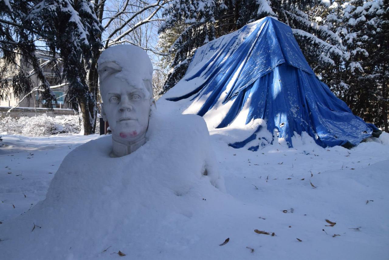Бюст демонтировали после жалоб курян — до этого он находился в ненадлежащем состоянии и был зарыт в снег.