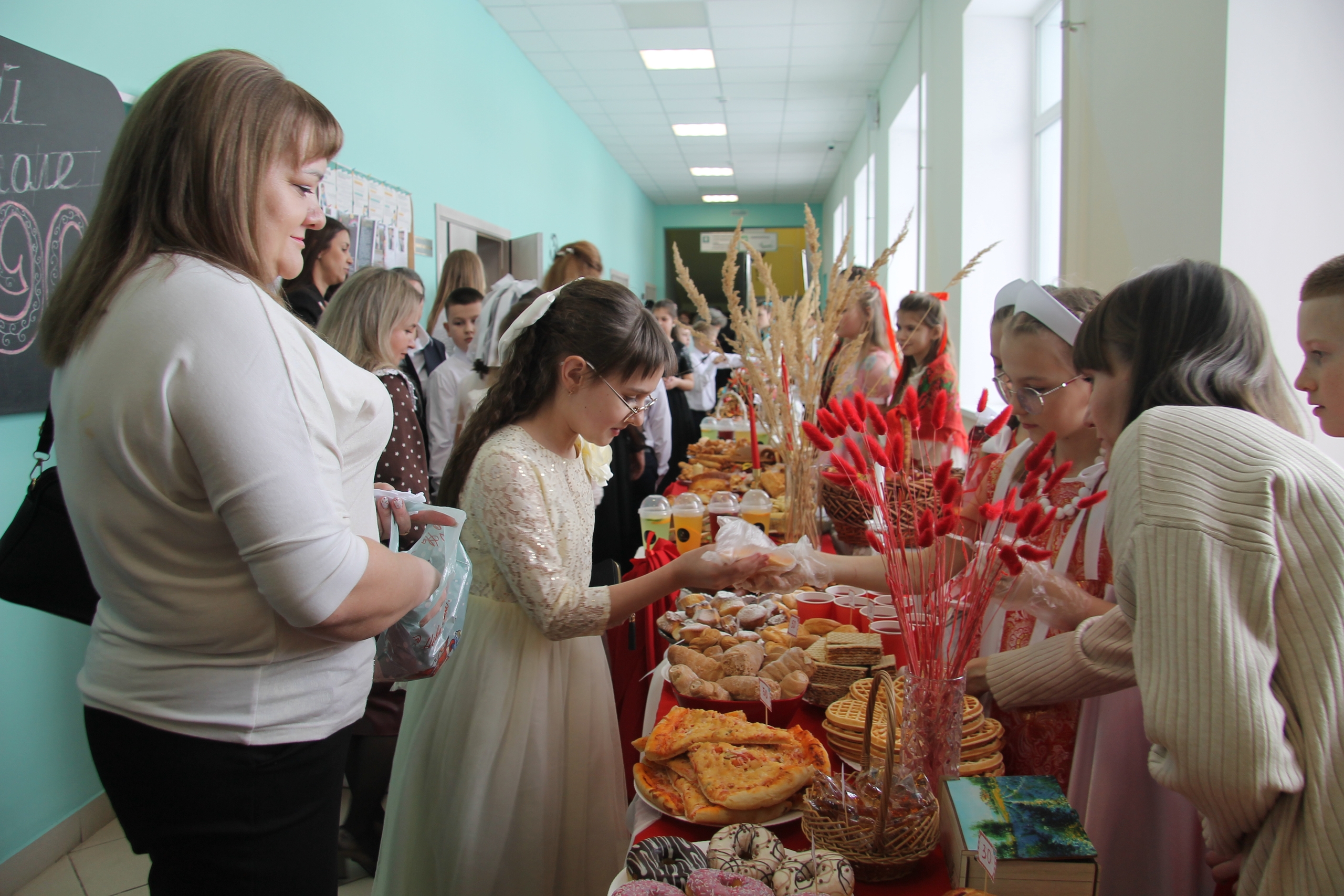 В школе имени Жиронкина праздник стартовал с широко развернувшейся благотворительной ярмарки. В роли продавцов выступили сами школьники. Они вместе с родителями испекли пироги, пирожные, булочки, печенье, предлагали к покупке вязаные игрушки и другие рукодельные работы. Гости с удовольствием приобретали вкусности и интересные подарки. На что потратить заработанные деньги – решат сами ребята в классах. Кто-то соберет традиционные подарки к 23 Февраля для бойцов СВО, а кто-то захочет помочь ребенку деньгами на операцию.
