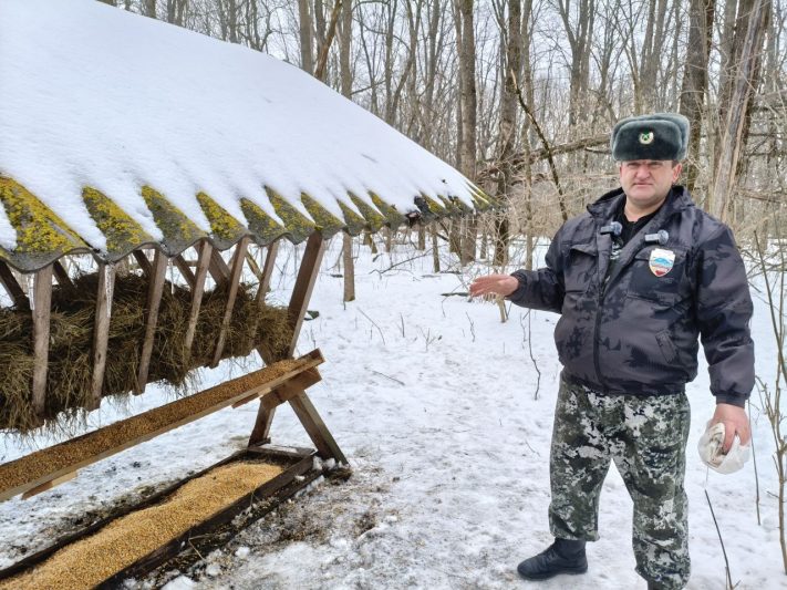 За зиму высыпали 3,6 тонны кукурузы, 2,7 тонны ячменя и 150 кг соли. Кормушки наполняют несколько раз в неделю в холодное время года. Но и летом оставляют немного еды.