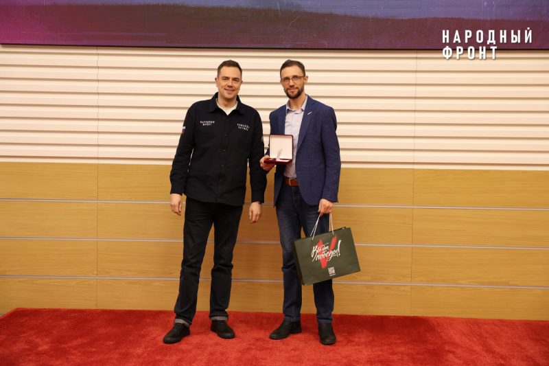 В центральном исполкоме Народного фронта в Москве наградили руководителей и журналистов региональных СМИ, активно освещающих работу волонтёров. В числе тех, кого отметили – директор телерадиокомпании «Сейм» из Курской области Андрей Дегтярёв. Ему вручили почётный знак «Народный фронт. Всё для Победы».