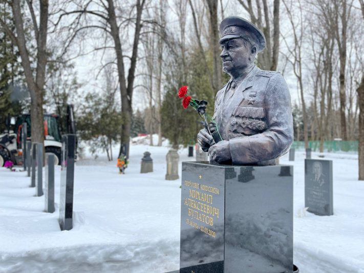 В годовщину смерти на могиле Михаила Булатова прошла поминальная лития. Вспомнить Героя Советского Союза пришли его родные, представители органов власти и ученики лицея №6 Курска.