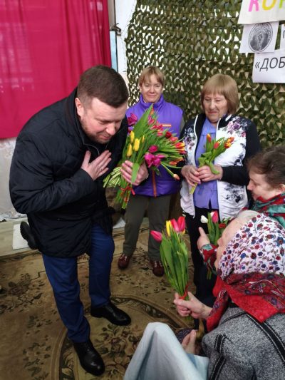 В рамках акции с 8 марта девушек-волонтёров штаба #МЫВМЕСТЕ46 поздравил заместитель губернатора Курской области Евгений Лобов. Он подарил добровольцам цветы и оставил пожелания в книге почётных гостей.