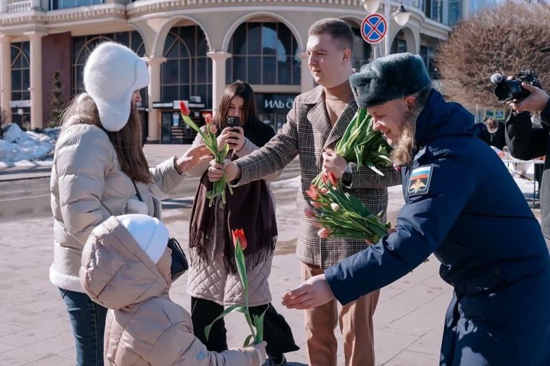 Волонтеры «Добро.Центра» вместе с председателем комитета молодежной политики региона Максимом Щедриным и участником программы «Курск.Герои!» Андреем Милютиным дарили девушкам цветы. Наш регион присоединился к Всероссийской акции «Вам, Любимые!».