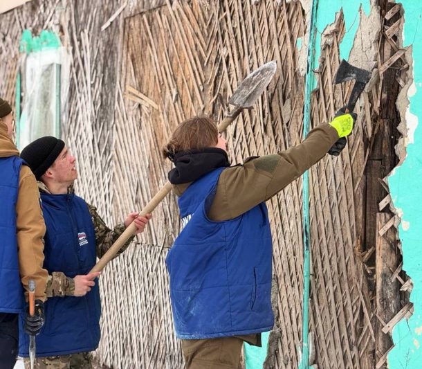 Ранее большие восстановительные работы провели в администрации Кудинцевского сельсовета. Волонтёры закрыли тепловой контур здания, убрали строительный мусор и устранили повреждения. Ещё одним объектом стал Кудинцевский фельдшерско-акушерский пункт.