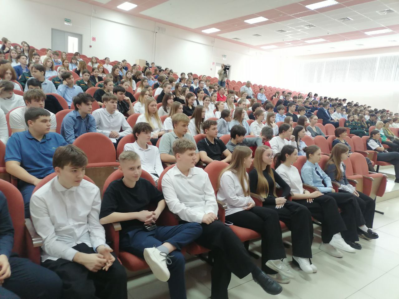 Сегодня в школе №60 по актовому залу летали дроны. Военнослужащие группировки «Север» провели здесь урок для старшеклассников по управлению и сборке БПЛА.