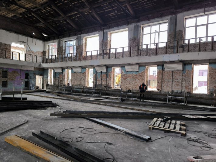 Здания комплекса были построены в 1963 и 1972 годах. За более чем полувековую историю капитального ремонта здесь ни разу не было. Сейчас подрядчик заканчивает разбор старых конструкций, после чего строители полностью обновят кровлю, фасад, инженерные сети, полы и окна.