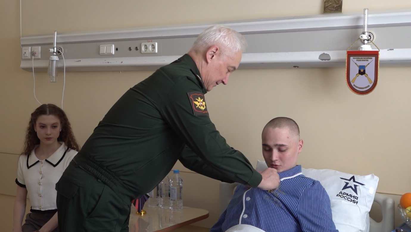Глава ведомства поблагодарил военнослужащего за мужество при выполнении боевых задач, пожелал ему скорейшего выздоровления и передал поздравления от Верховного Главнокомандующего. Он также заявил, что будет следить за лечением и реабилитацией.