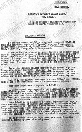 Бойцы группировки войск «Север» вместе с сотрудниками госархива продолжают изучать и публиковать документы середины прошлого века. Сегодня они представили материалы о партизанских отрядах, действующих в 1942 году в Курской области. Из документов мы можем узнать о деятельности партизан Михайловского, Троснянского и Дмитриевского отрядов.
