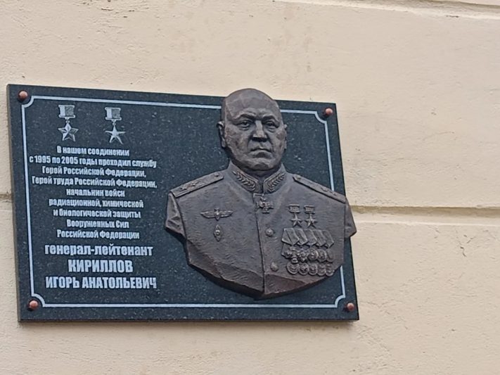 В Курске у КПП войсковой части №11262 установили памятную доску, посвященную российскому военачальнику, герою России, Герою труда РФ, генералу-лейтенанту Игорю Кириллову. С 2017 года Игорь Анатольевич возглавлял войска радиационной, химической и биологической защиты ВС РФ. Он погиб в ходе заказанного ВСУ теракта. Звание Героя России Кириллову было присвоено посмертно.