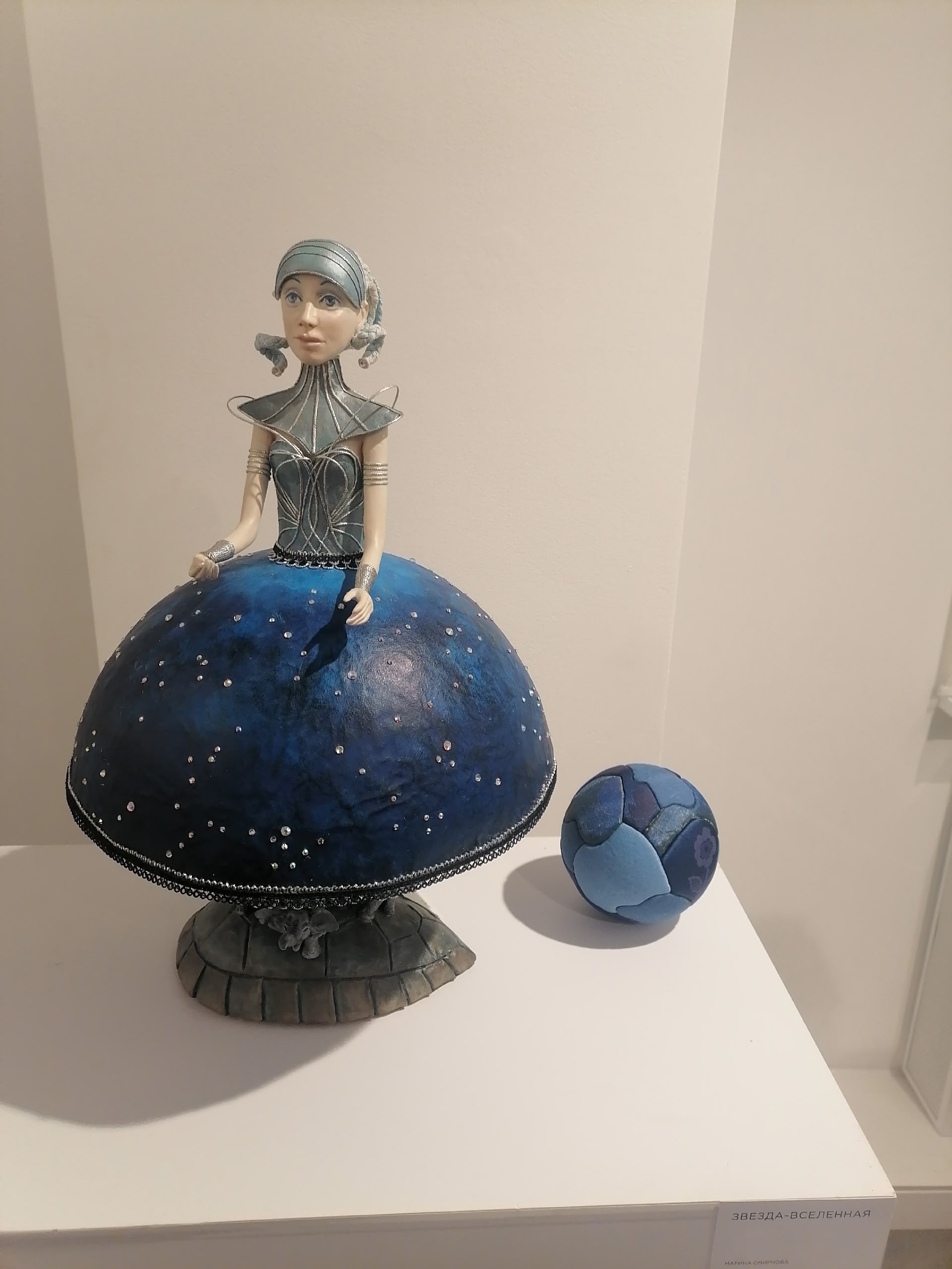 Художественную часть составляют авторские куклы. Их создали более 20 художников из разных регионов России. В экспозиции представлены образы Юрия Гагарина, персонажи мультфильма «Тайна третьей планеты», а также кукла, посвященная актрисе Юлии Пересильд.