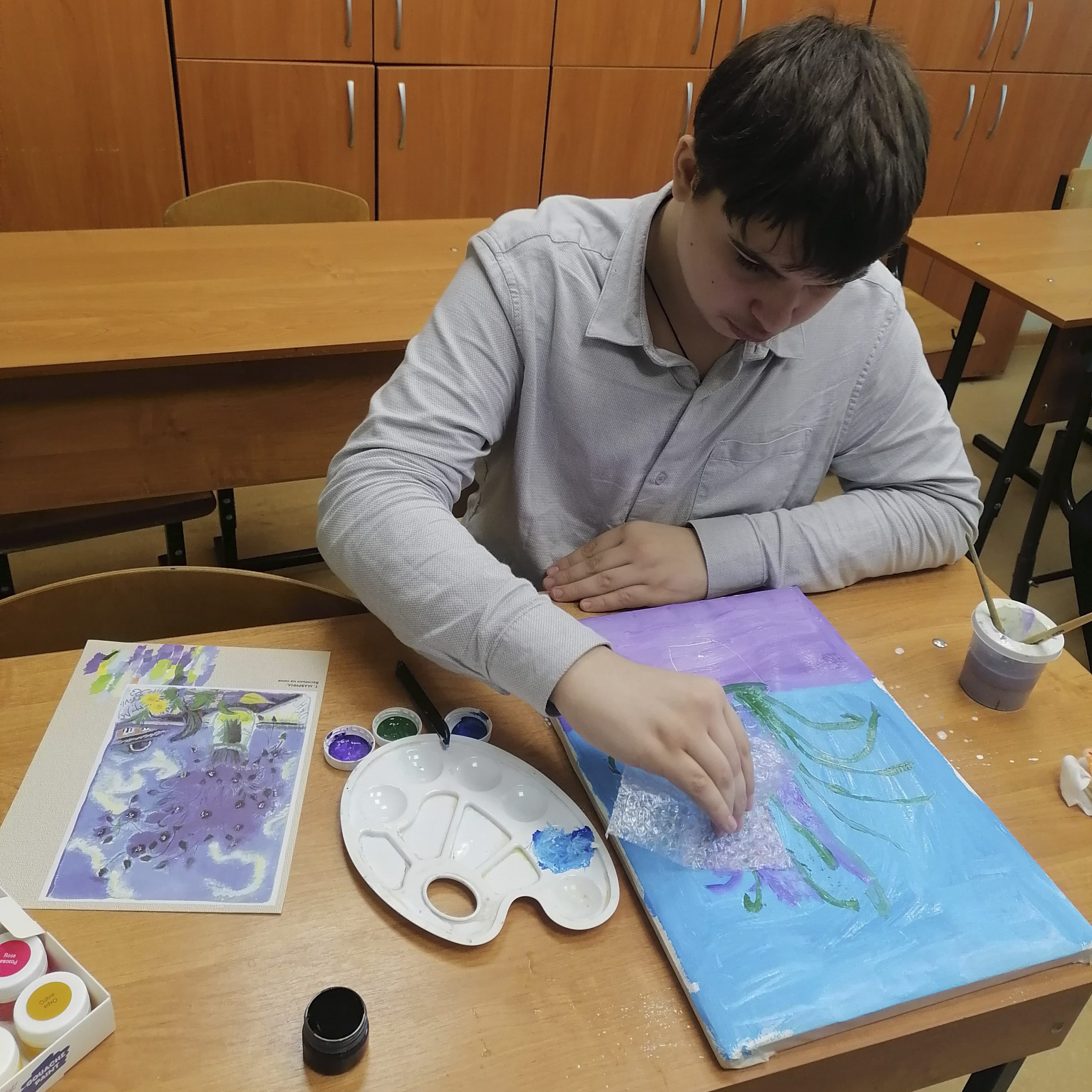 – Надо бы добавить камешки на дне, – советует ей учительница и переходит к Даниле, сосредоточенно выводящему стволы деревьев. – Не многовато ли чёрного?