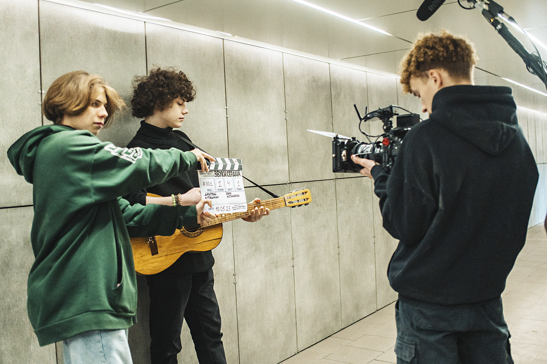 – Можно сказать, что я вложил в главного героя частицу себя. Место на главную роль очень долго пустовало. Я думал, что очень важно найти человека, который сможет профессионально сыграть то, что я придумал. Но когда увидел Максима, который выглядел как мой двойник, понял, что хочу видеть именно его в своём фильме, – рассказывает Дмитрий. – Я учил Максима игре на гитаре, а мой друг – вокалу. Было видно, что ему нелегко это даётся, но он не опускал руки. Каждый раз приходил советоваться со мной, спрашивал, как правильно что-то сделать, чтобы в кадре это выглядело красиво.