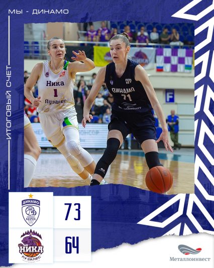 «НИКА-Лузалес» затем взяла верх над курянками– 24:11. К большому перерыву гостьи вели 37:32. Но курянки не сдавались. Следующий отрезок времени они завладели преимуществом — 28:12. В итоговой четверти четыре точных штрафных от Сазоновой предопределили окончательный исход – 73:64 в пользу динамовок.