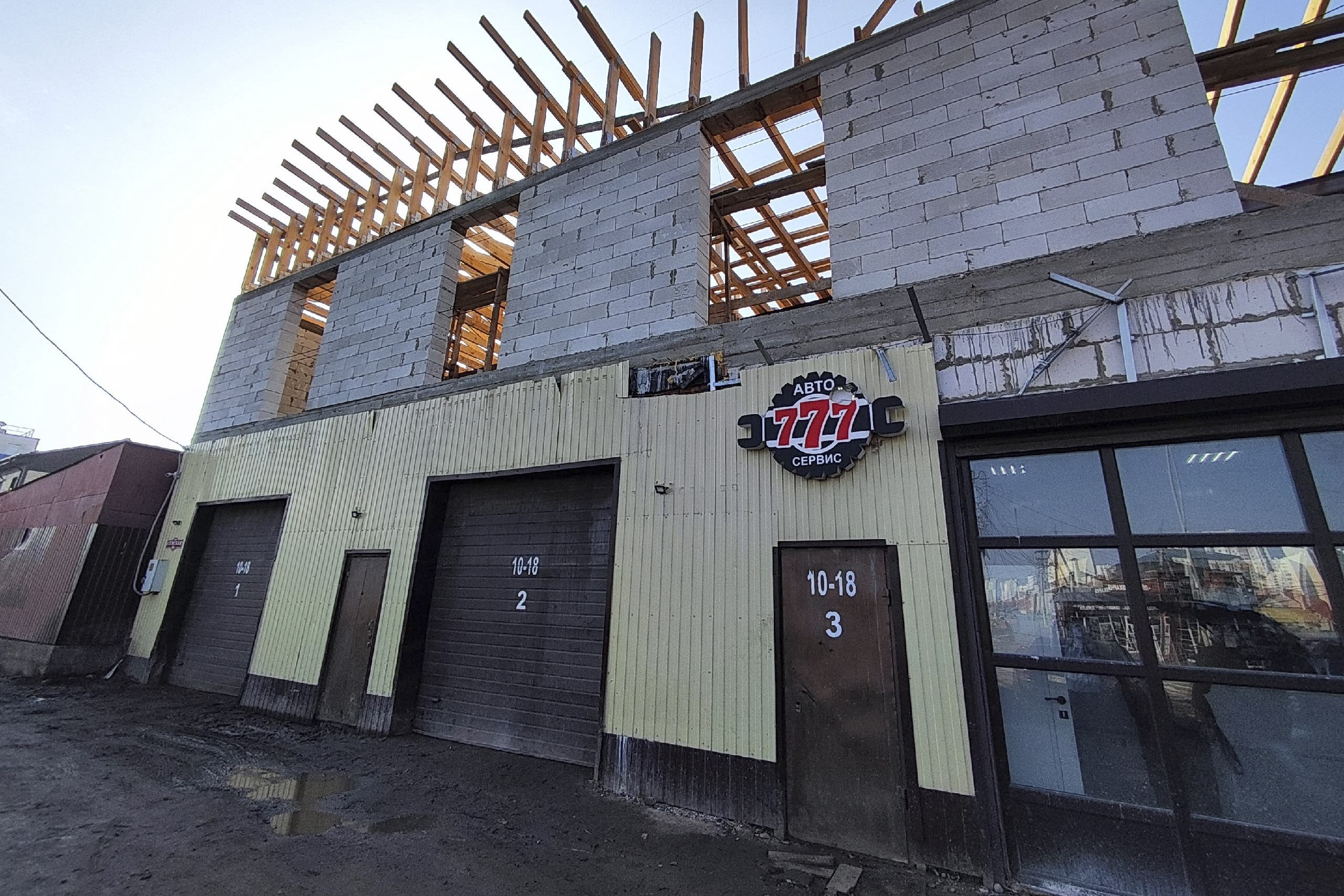 Первая точка в маршруте – здание на улице Сумской. Этот участок улицы уже относится к СНТ «Моква». Надпись на вывеске гласит: «Автосервис 777». Видно, что владелец бизнеса задумался над расширением и пристраивает второй этаж. Появление людей с камерами привлекает внимание сотрудников мастерской, которые спешат доложить о незваных гостях владельцу и передают трубку Александру Горину.