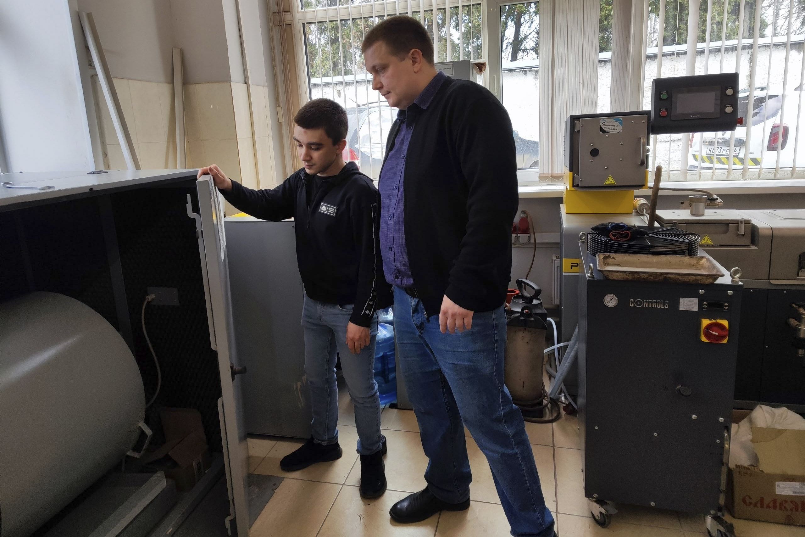 – Через 85 минут мы достаём образец и проверяем на физико-механические характеристики. В частности, при помощи ротационного вискозиметра смотрим динамическую вязкость, – рассказывает инженер 1-й категории отдела качества и инновационных технологий Никита Сапрыкин. – Это позволяет определить температуру перемешивания смеси для асфальтобетонного завода, чтобы его там не пережгли. В нашем случае она должна быть от 160 до 180 градусов. Также узнаём температуру уплотнения – это нужно для того, чтобы готовую смесь во время укладки не перекатали.