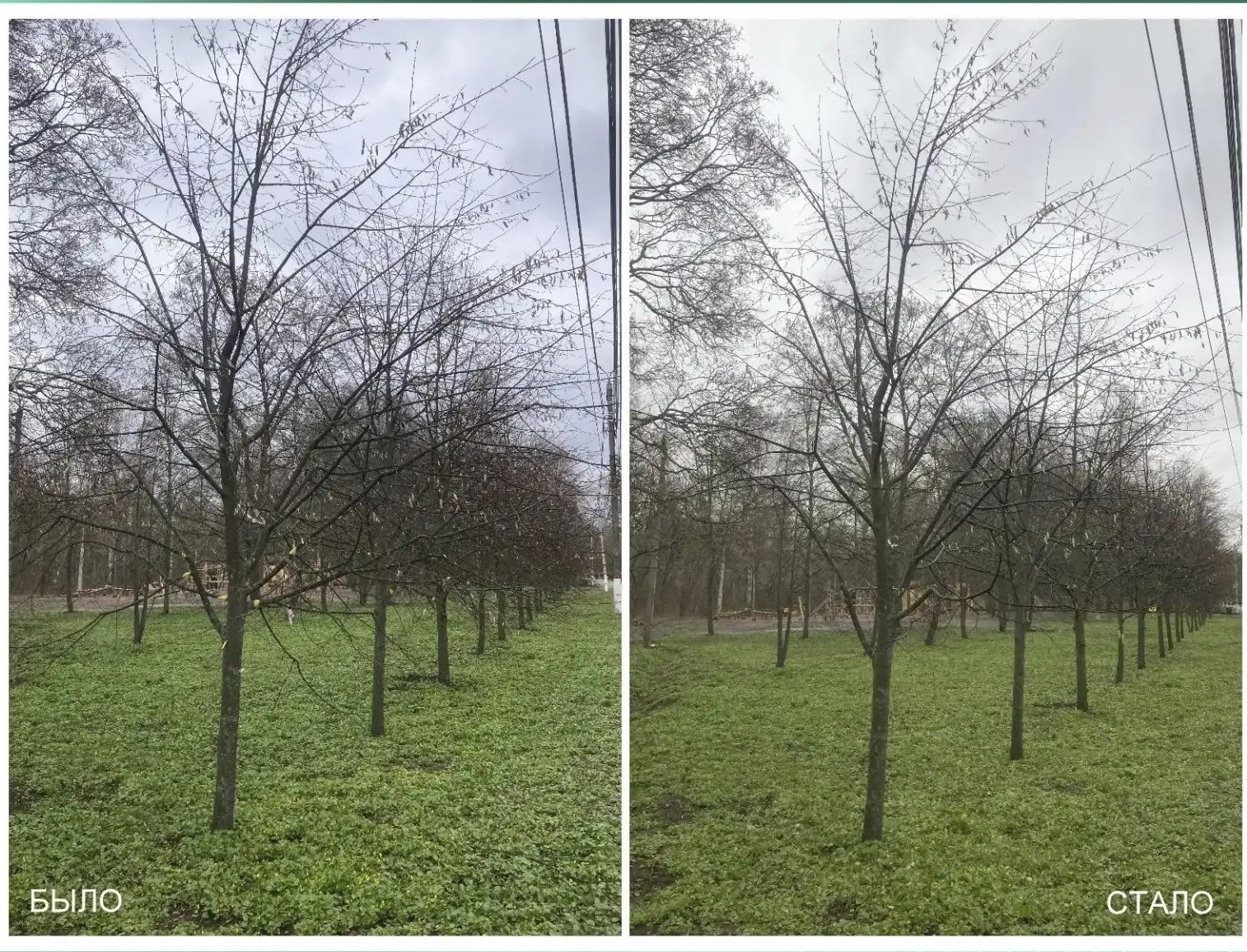 Специалисты планируют повторить обрезку через несколько лет, чтобы закрепить результат и продолжить формирование деревьев.