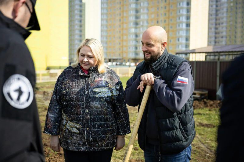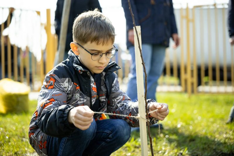 Евгений Маслов вместе с родителями и школьниками посадили яблони в рамках акции «Сад памяти».