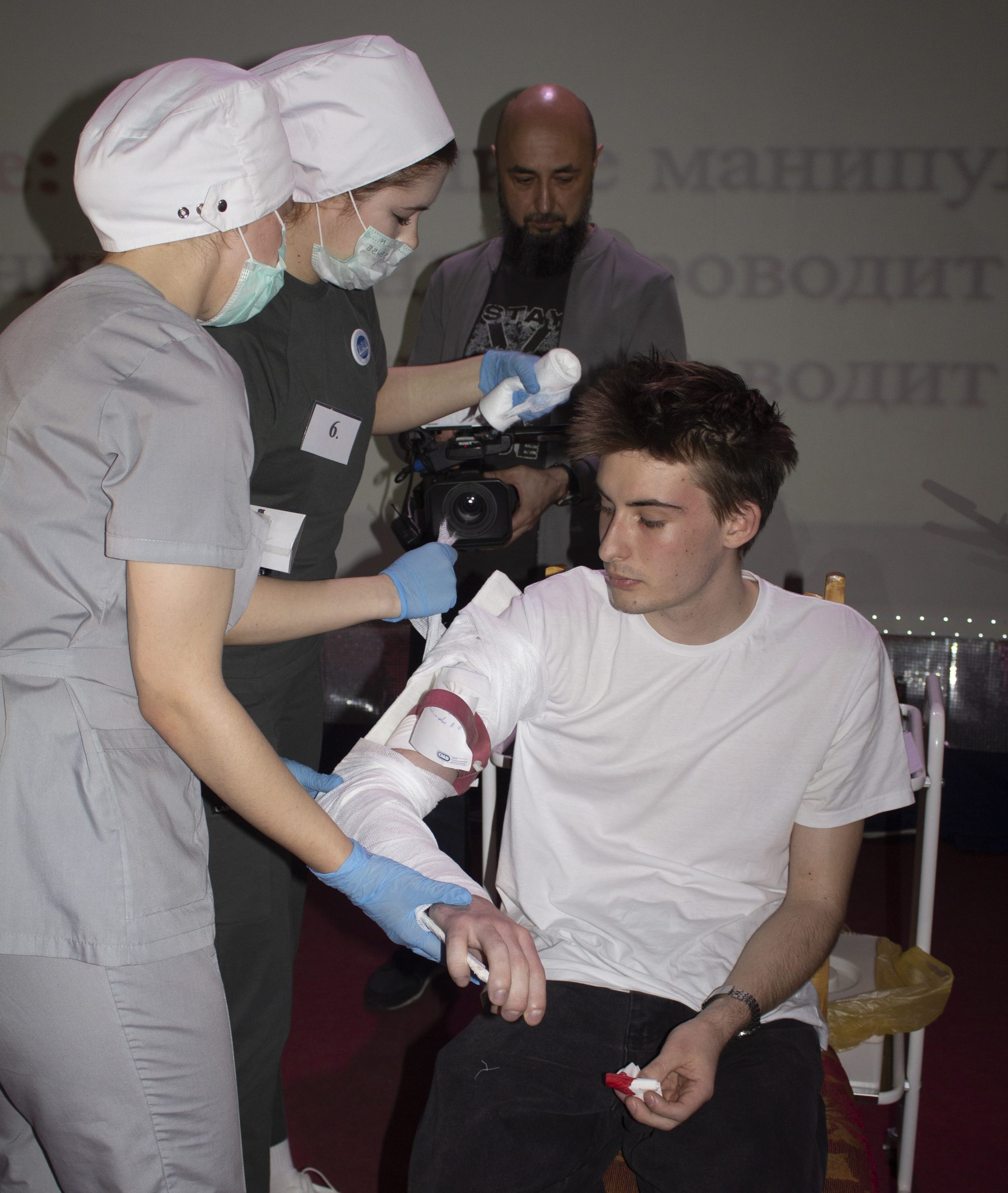 Программа конкурса была насыщенной. Первое задание – визитная карточка. Конкурсанты рассказали, как выбрали профессию, чему научились на занятиях и практике. На втором и третьем задании отвечали на сложные вопросы блиц-турнира (на подготовку давалось 10 секунд) и демонстрировали навыки по оказанию помощи в ситуациях, которые встречаются в практике, в том числе и в экстренных случаях.
