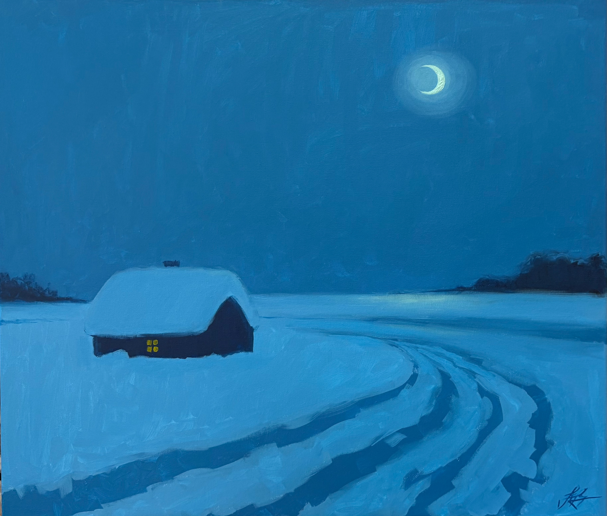 – Да, меня пригласили поучаствовать в конкурсе, и я создала картину «Зимний пейзаж». Её отобрали, и она посетила пять городов области. В Фатеже, где планируется открытие большого музея, посвящённого Свиридову, мою картину отобрали для фонда музея. Я захотела создать копию, но решила, что оригинал должен отличаться, и написала её немного в других цветах, назвав «Тишина». В итоге копия потом останется у меня, а оригинал отправится в обновлённый музей Свиридова.